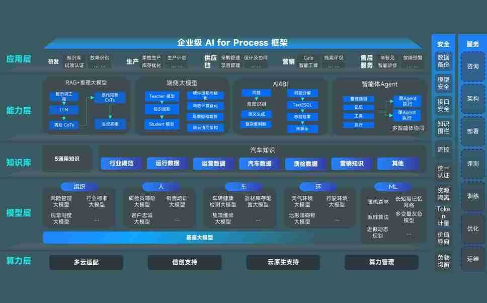 端到端的一站式AI工作空间深度融合了从企业战略规划到日常经营的全流程业务板块,,,,定向解决车企内部领域多、、、部门多、、、链条长、、场景碎片化等难题,,支持车企快速构建以AI为核心的生产力写作体系,,实现任务执行与AI能力的无缝集成与交互